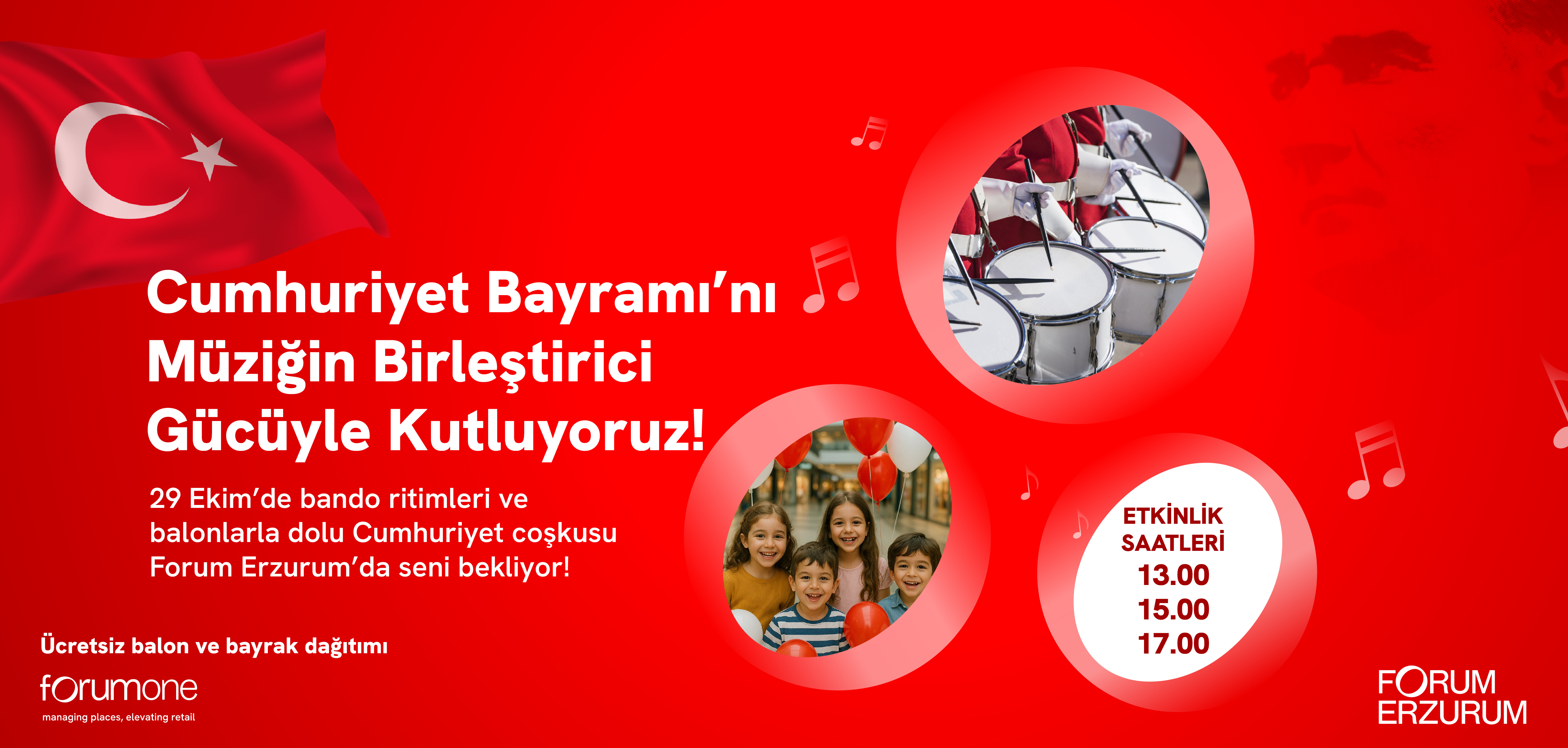 29 Ekim'de bando ritimleri ve balonlarla dolu Cumhuriyet coşkusu Forum Erzurum' da seni bekliyor!
